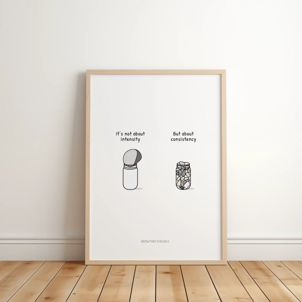 A visual reminder that small consistent actions bring you further.